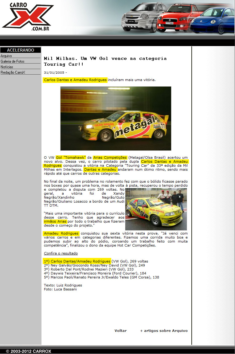 O VW Gol Tomahawk da Arias Competições (Metagal/Olsa Brasil) acertou um novo alvo. Dessa vez, o carro pilotado pela dupla Carlos Dantas e Amadeu Rodrigues conquistou a vitória... |