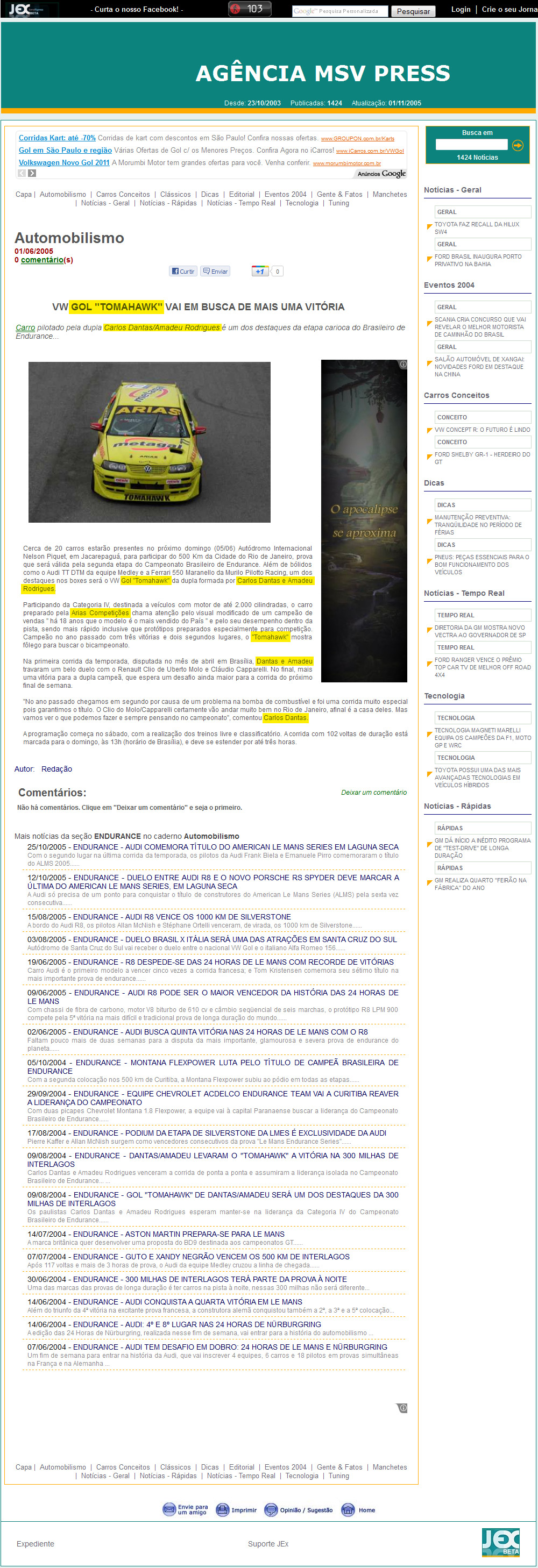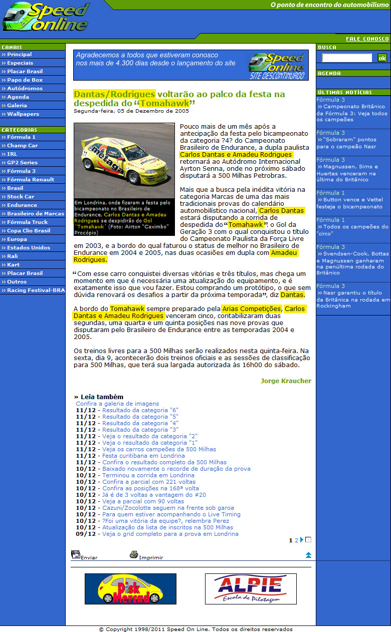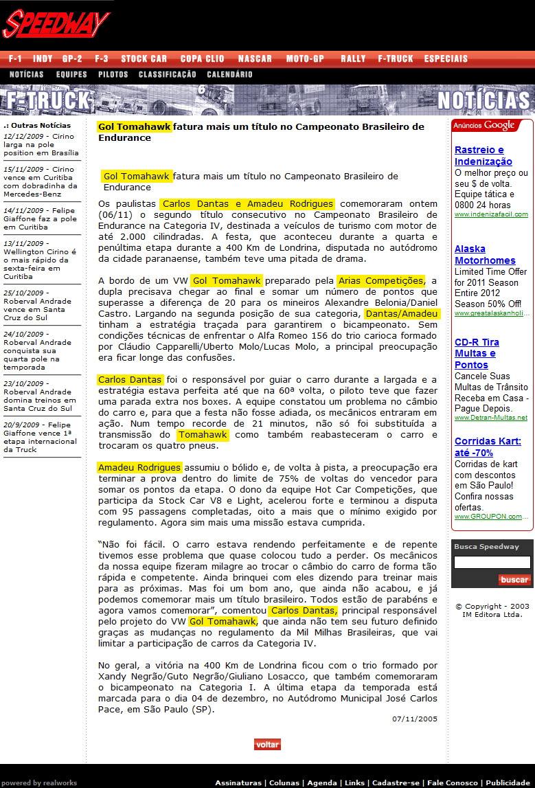Campeonato Brasileiro de Endurance 2005 "Geral" - Categoria IV - GOL TOMAHAWK (BI-CAMPEÃO)